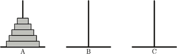 栈是一个有着特殊规则的数据结构。我们熟悉汉诺塔游戏(如图 1 所示),这里有一个明确的规则,即每次只能移动顶端的一个圆盘。