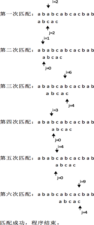 算法运行过程:(图中,i 和 j 表示匹配字符在数组中的位置下标)