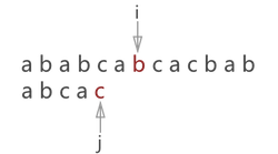 if (T[i-1]!=T[j-1]) {