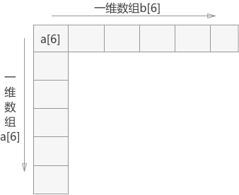 图1中,一维数组 b[6] 中每个单元都存放着长度为 6 的数组(例如:b[0] 存放的是 a[6] ,b[1] ~ b[5] 也和 b[0] 一样),就组成了 array[6][6] 的二维数组。