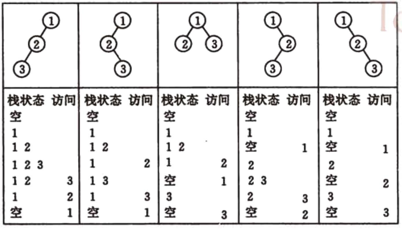 中序序列是对二叉树进行中序遍历获得的,遍历的过程实质上就是结点数据进栈出栈的过程。所以,中序序列的个数就是数列(1,2,3)按1-2-3的顺序进栈,