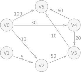 V0 - V5的最短路径中的顶点有: V5 V3 V4 V0