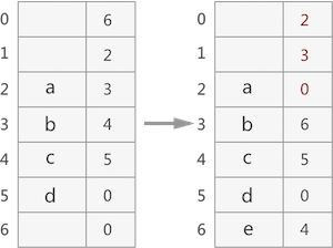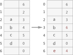 - 最后将 e 结点所在位置的下标给 b 结点的游标;