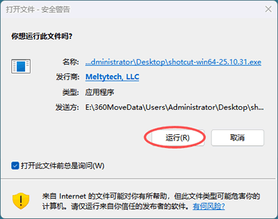 2) 双击下载好的 .exe 安装文件,在弹出的安全提示中选择「运行」: