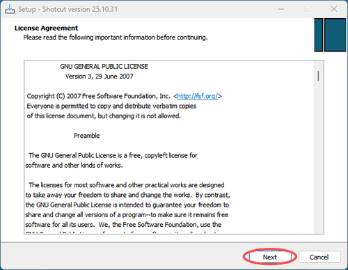 4) 阅读并接受开源许可协议(Shotcut 遵循 GPLv3 协议):