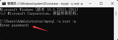 此时会提示输入密码,输入之前设置的数据库密码,然后回车:
