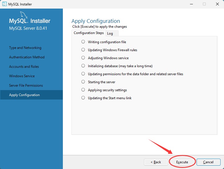 4) 点击 “Execute” 按钮,系统开始安装 MySQL 8.0.41,安装过程中会显示进度条,耐心等待安装完成: