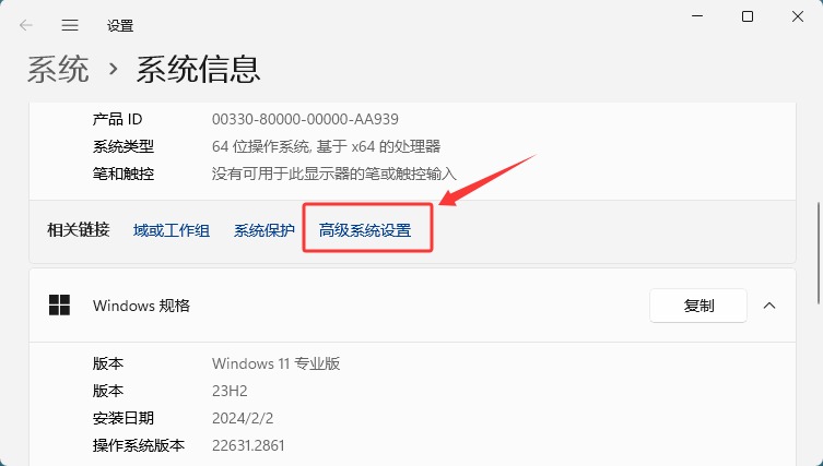 找到“高级系统设置”: