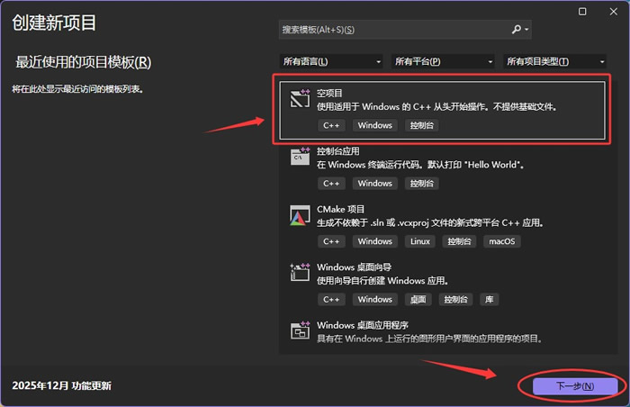 在弹出的如下窗口中选择“空项目”: