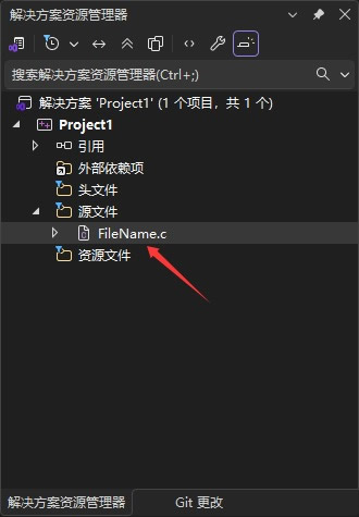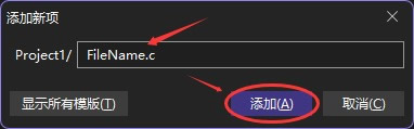 点击“添加”按钮,即可成功创建出一个名为 FileName.c 的源文件,如下图所示: