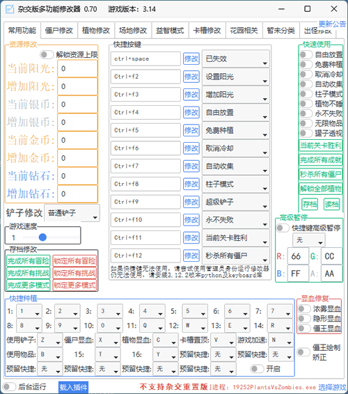 除了游戏资源包外,还为大家分享了适用于当前版本的游戏修改器: