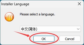3) 默认“简体中文”即可,点击“OK”: