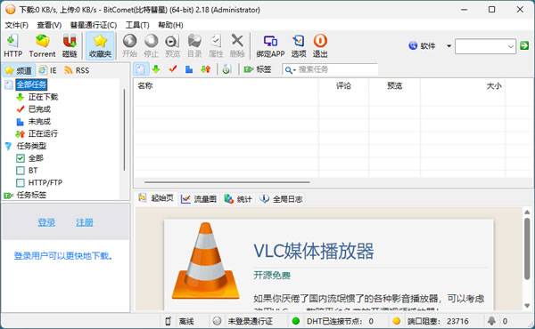 双击它即可启动,BitComet 的主界面如下图所示: