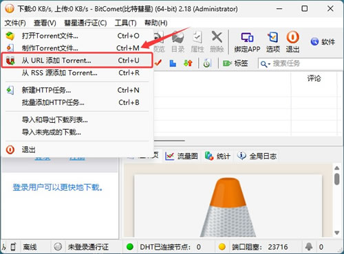 2) 还可以直接从 URL 打开 Torrent 文件,点击菜单栏中的 “文件”,继续选中“从URL打开Torrent”: