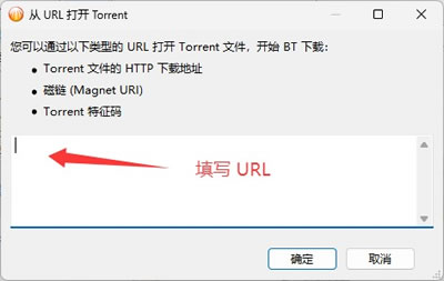将 URL 复制至对话框中,等待系统下载 Torrent 文件后,选择下载位置,即可开始下载:
