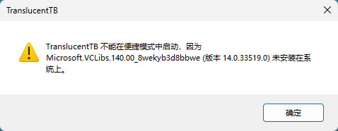 原因在于系统里还没有安装 TranslucentTB,使用第 2 种方法安装 TranslucentTB 之后,就不会弹出这个窗口了。