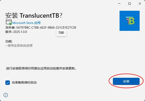 2) 下载 TranslucentTB.appinstaller 安装包,双击启动: