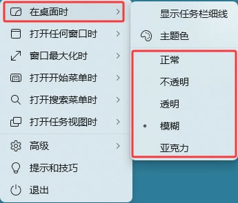 在 TranslucentTB 的图标上右键,可以对任务栏的样式做修改: