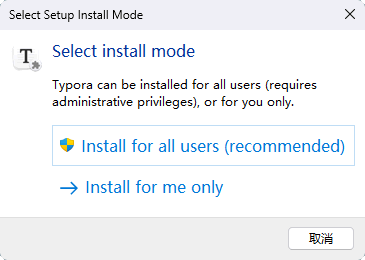 1) 我使用的是 Windows x64 系统,下载得到 typora-setup-x64.exe 安装包,双击启动执行。