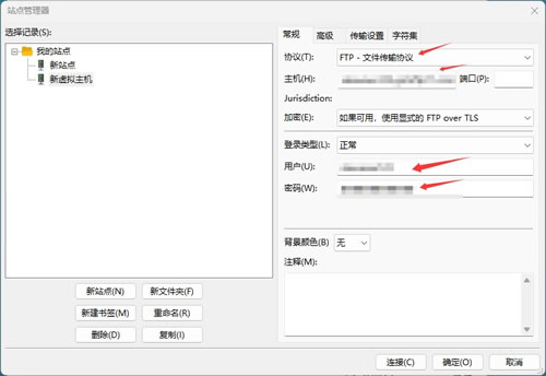 - 协议类型(FTP/FTPS/SFTP)和对应的端口号,通常 FTP 的默认是 21,SFTP 的默认是 22;