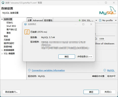 首次连接需要下载相应的驱动,系统会自动查找到合适的驱动,只需点击"下载"即可。测试成功,证明输入的信息是没问题的,点击“确定”。
