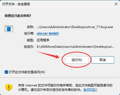 1) 下载 winrar_713scp.exe 安装文件,双击启动安装,如果系统弹出下图所示的安全警告框,点击“运行”即可: