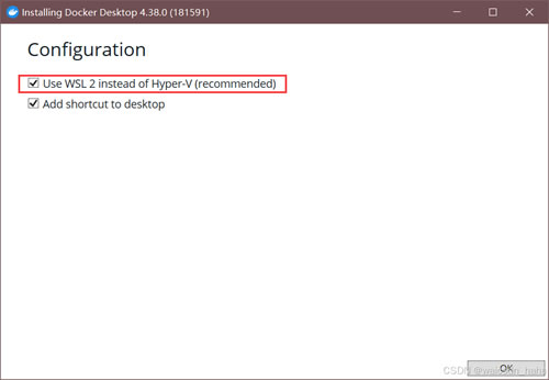 1) 获取安装包,双击「Docker Desktop Installer.exe 」文件启动安装程序。2) 勾选「启用WSL2功能」选项: