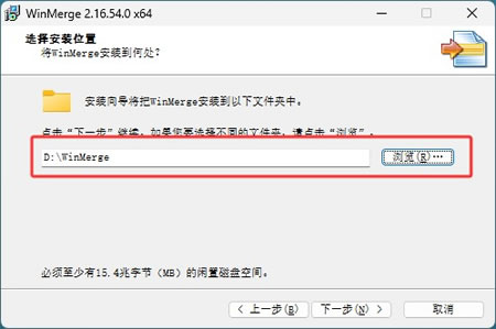 3) 选择安装位置:可以保持默认的 C:\Program Files\WinMerge\,也可以点击"浏览"选择其他磁盘(如 D 盘)。建议安装到其他非系统盘。