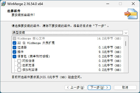 - Shell Extension(推荐勾选):允许你在右键菜单中直接选择"使用 WinMerge 比较",非常方便
