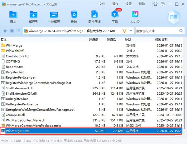如果你下载的是 ZIP 压缩包(如 winmerge-2.16.54-x64-exe.zip),安装更加简单:- 解压文件:使用 WinRAR、7-Zip 或 Windows 自带的解压功能,将 ZIP 文件解压到任意位置(如 D:\WinMerge)。