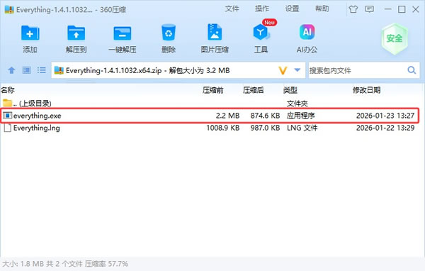- 选择对应版本:进入解压后的文件夹,会看到 Everything.exe(32位)和 Everything-x64.exe(64位)