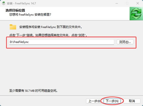 3) 选择安装位置,默认路径:C:\Program Files\FreeFileSync,建议点击"浏览"选择其他非系统分区(如D盘)