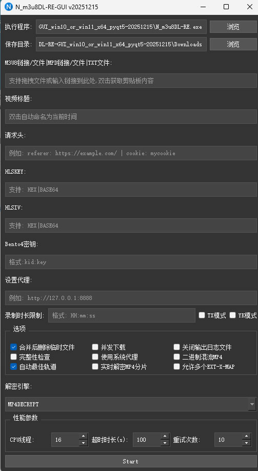 双击运行 N_m3u8DL-RE-GUI.exe,即可看到如下界面: