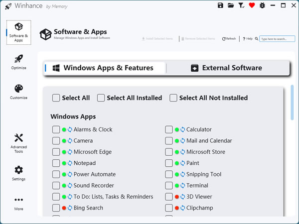 - 真正的一站式解决方案:Winhance 集成了软件管理、系统优化、界面定制、隐私保护四大模块;