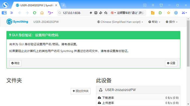首次访问 Syncthing 的 Web 界面(http://127.0.0.1:8384),你会看到一个欢迎页面和设置向导。第一步:初始配置