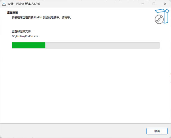 4) 点击"安装"按钮开始安装过程,安装完成后,可以选择立即运行 PixPin。