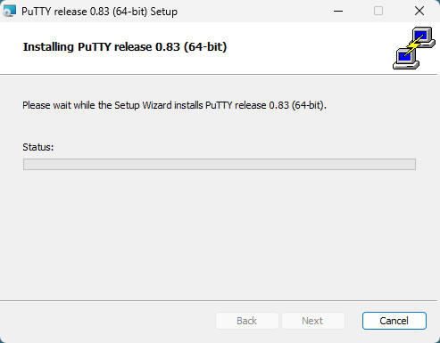 4)等待安装完成。putty安装过程非常快速,通常只需几秒钟。安装完成后,可以根据需要选择是否创建桌面快捷方式和开始菜单项。