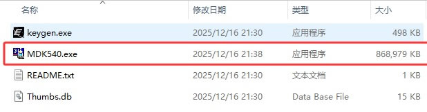 4) 回到下载的 Keil 5 安装文件夹,找到“keygen.exe”: