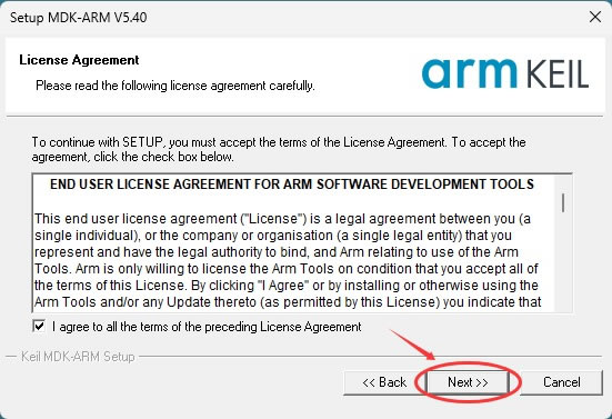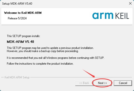 2) 双击 MDK540.exe,启动安装,点击 Next: