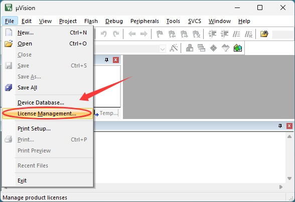 2) 点击 “File”,再点击 “License Management”:
