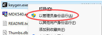 5) 右键 keygen.exe,选择“以管理员身份运行 ”: