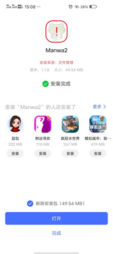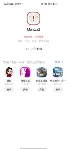 1) 下载名称为“Manwa2.apk”的安装包文件,建议直接用安卓手机打开下载链接,安装包就顺利下载到手机上了。2) 点击Manwa2.apk启动安装,系统可能会提示安装风险,点击无风险安装即可: