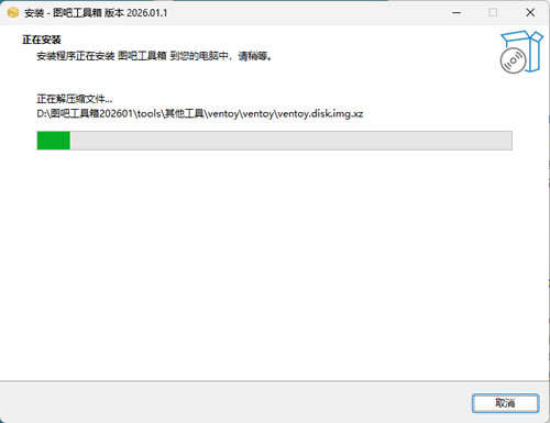 图吧工具箱是绿色软件,安装过程非常简单:1) 下载 exe 安装包,双击启动执行。