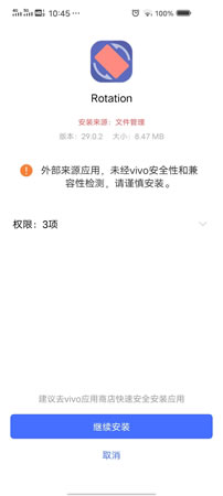 1) 将安装 Rotation 的 apk 文件下载到手机上,注意文件名一定以 apk 结尾,不能有其他的。