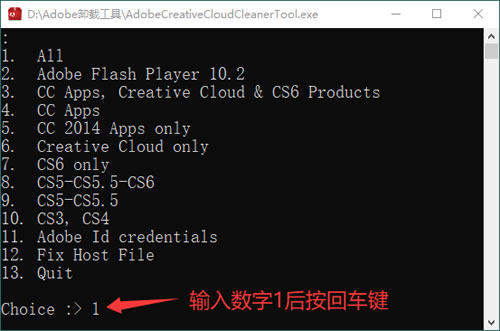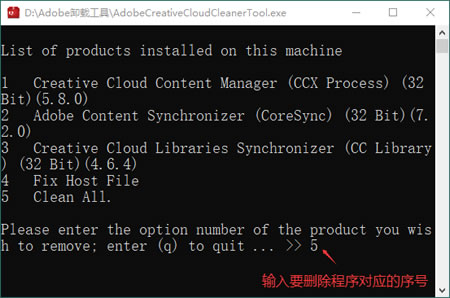 5)选择要清除的应用程序,输入目标程序前的数字序号即可,全部删除的话输入5并按回车键: