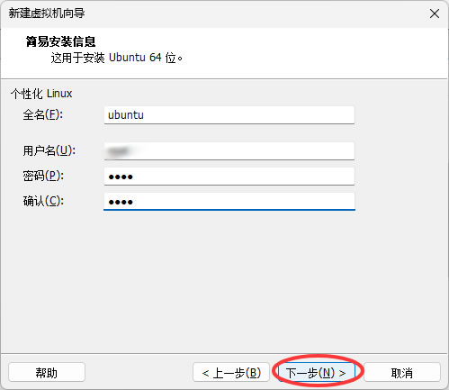 4) 填好全名、用户名、密码、确认密码后,后续一直点击下一步就行了。