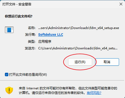 FDM的安装过程特别简单,基本上就是一路下一步。1) 下载安装包,然后直接双击它,系统可能会弹出风险提示,点击运行即可。