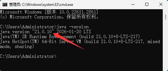 cmd打开命令提示符(cmd),输入"java -version"和"javac -version",如果显示JDK 21的版本信息,说明安装和配置成功。