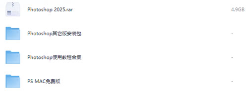 Photoshop的安装过程非常简单,全程只需要傻瓜式操作,下面我详细说明一下安装步骤,我安装的是 Photoshop 2025:1)下载 Photoshop 2025.rar 压缩包文件,解压后得到下图的文件夹: