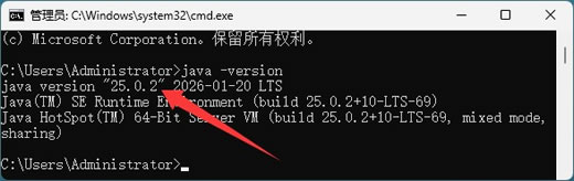 cmd打开命令提示符(cmd),输入"java -version"和"javac -version",如果显示JDK 25的版本信息,说明安装和配置成功。